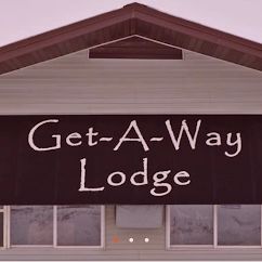 The Get-A-Way Lodge offers 6 bedrooms with 2 beds each, a full bathroom in each room, a full kitchen, living/dining room area, and an attached cleaning station.